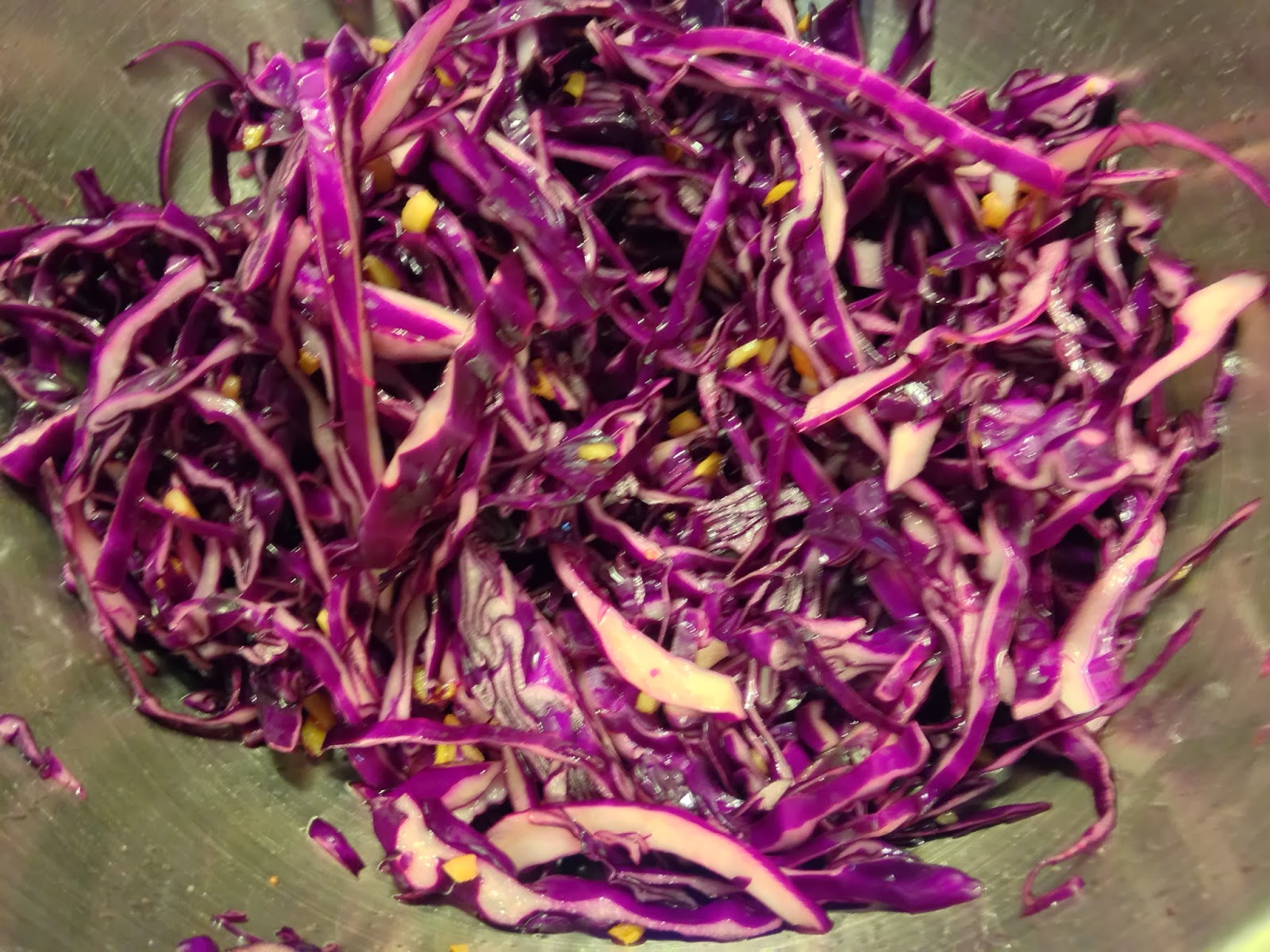 a pound of thinly sliced red cabbage. The smallest red cabbage I could find